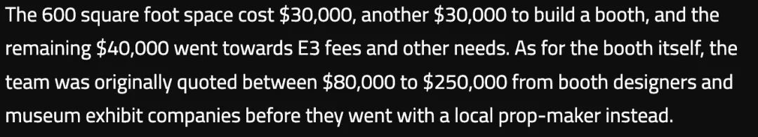 讲个刚刚遇到的事儿:前几天不是索尼微软任天堂、育碧和 D 社都说要退出 E3 展会么,我就有点好奇 E3 展会租金到底要多少钱?