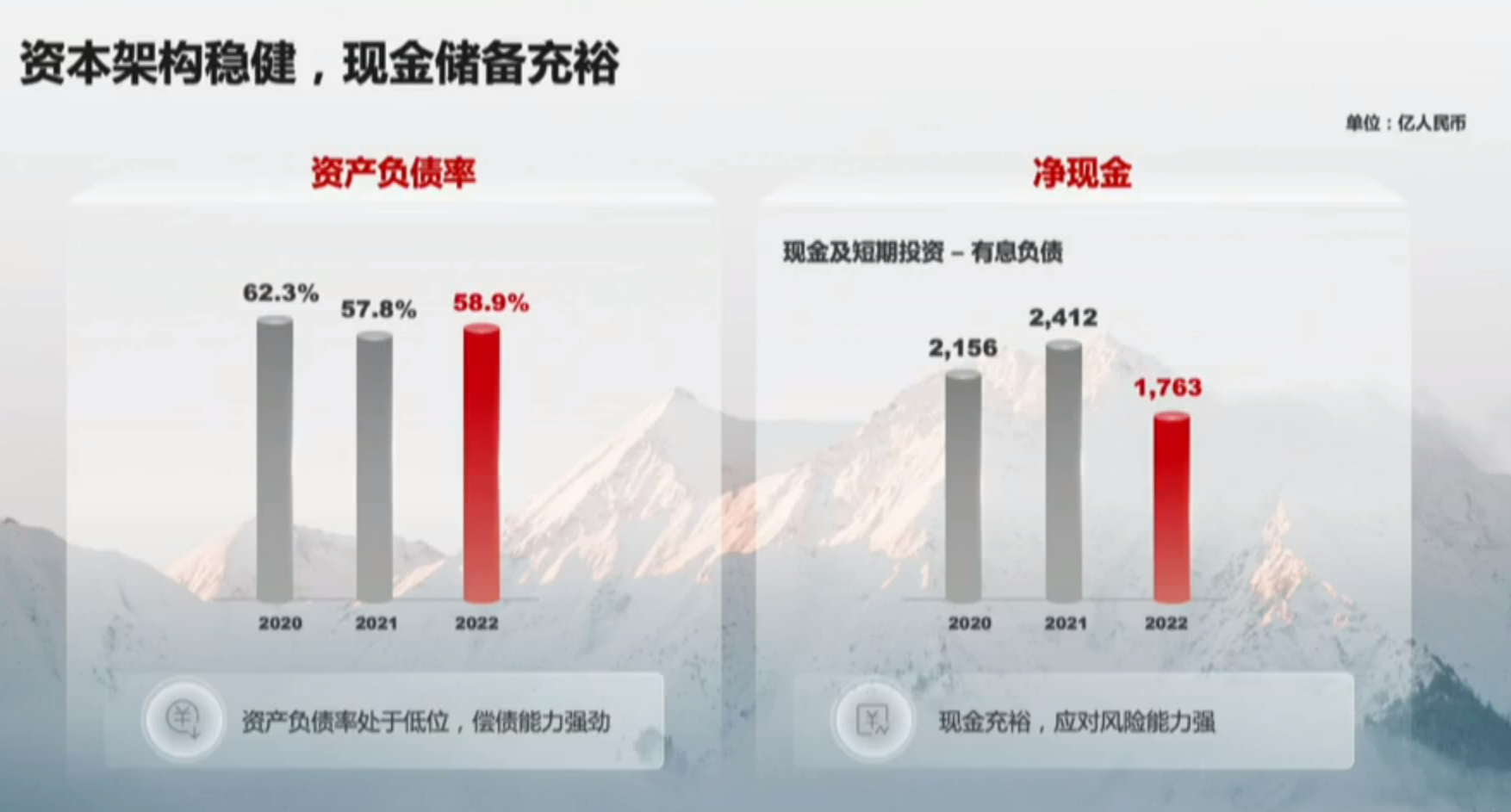 资产负载率58.9%,比去年底略高1.1个百分点,但是比2021年底低了3.4个百分点。