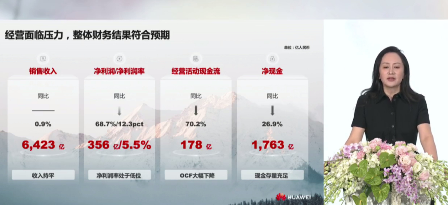 净现金1763亿元,相比2021年底的2156亿元、202年底的2412亿元分别减少18.2%、26.9%,但孟晚舟强调,华为的现金存量依然充足,应对风险能力足够强,按目前的商业规划足够支持未来几年的投入。