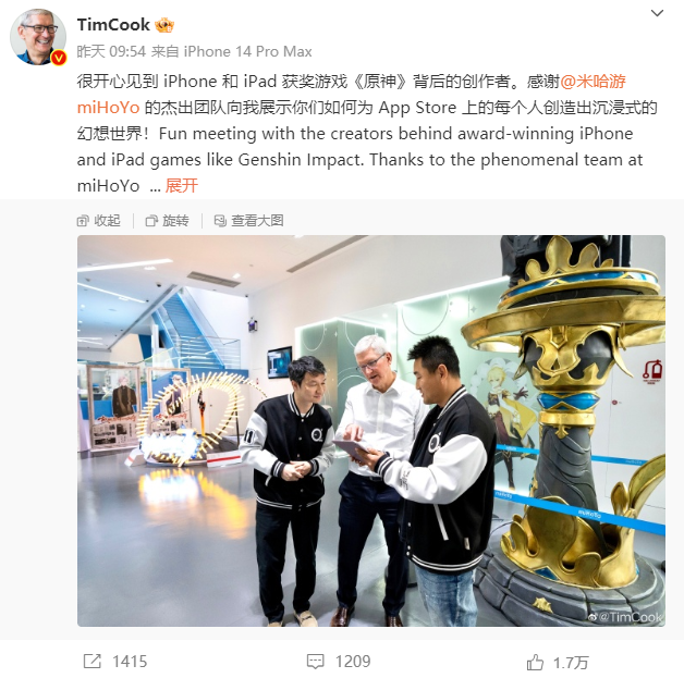 有意思的是,在参观北京三里屯苹果零售店时,还诞生了网友用小米13 Pro与库克合影的经典名场面。
