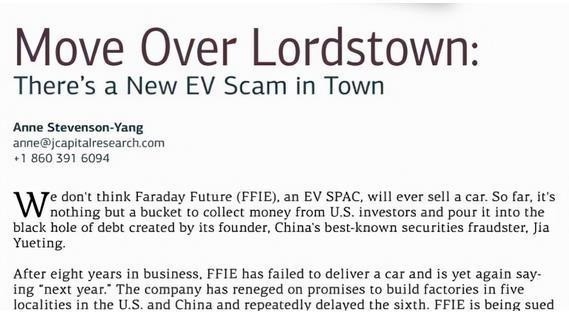 在这之前,做空机构盯上了FF公司。去年10月份,美国做空机构J Capital Research(美奇金投资咨询公司)发布沽空报告,称这是一场“新兴的电动汽车骗局”,不认为FF公司能卖出哪怕一辆汽车。不过现在来看,FF公司启动交付后至少能卖一辆FF 91。