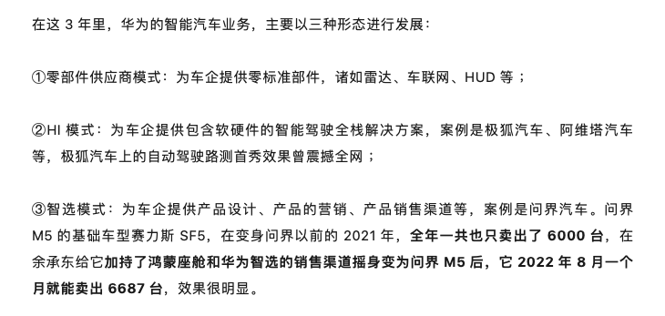 不得不说,当大家都把造车当成是一个 “ 赚快钱 ” 的项目时,最缺盈利的华为不赚快钱,坚定走自己路线,还是挺让人意外的。