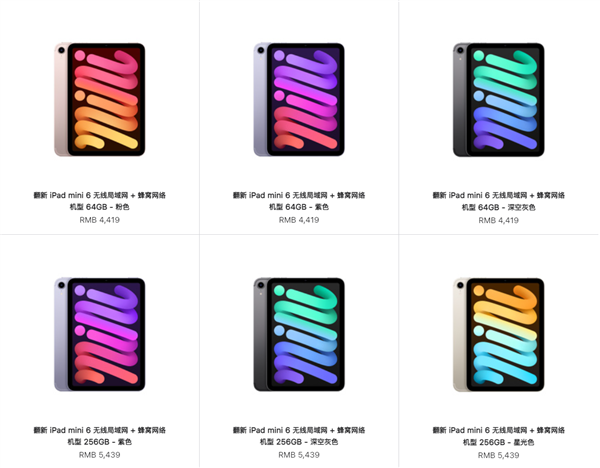 苹果中国开卖官方翻新版iPad mini 6:4419元起