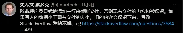 然而在新版本下,同样的代码就只能覆盖写入旧文件,只要新文件小于旧文件,旧文件的残余部分就会留下来。