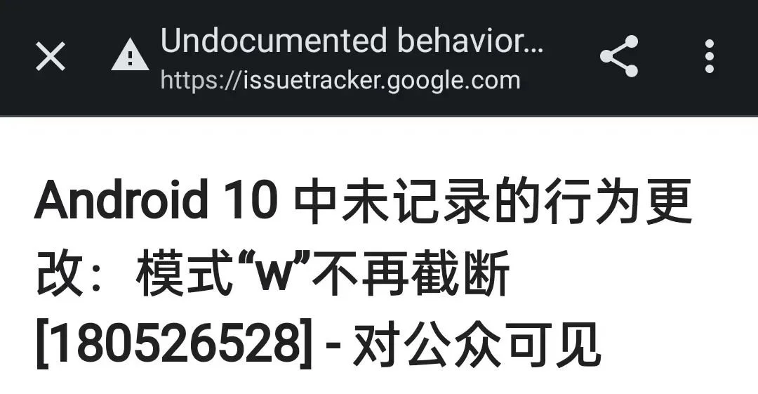 Google是因为 Android 9 到 Android 10 的时候,读写文件相关的一个接口发生了变动,而且没有记载在文档和更新日志里。