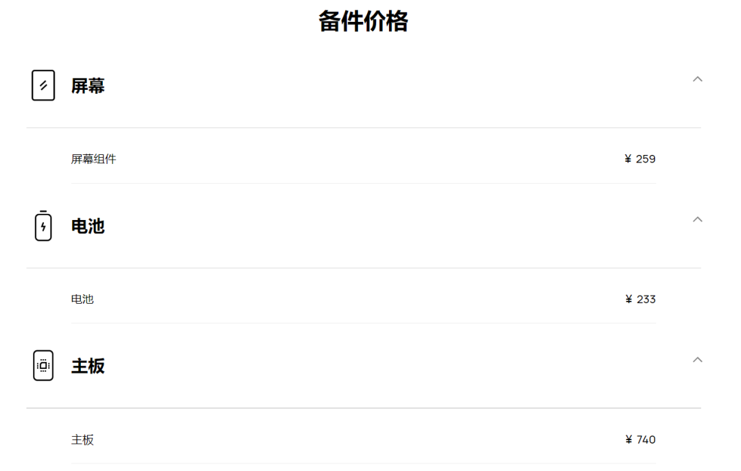 只不过它的维修价格其实也没便宜到哪里去,换块屏幕 259、换块电池 233、换块主板则是 740,而且还不包含人工费,人工费大概在 50-100 不等。