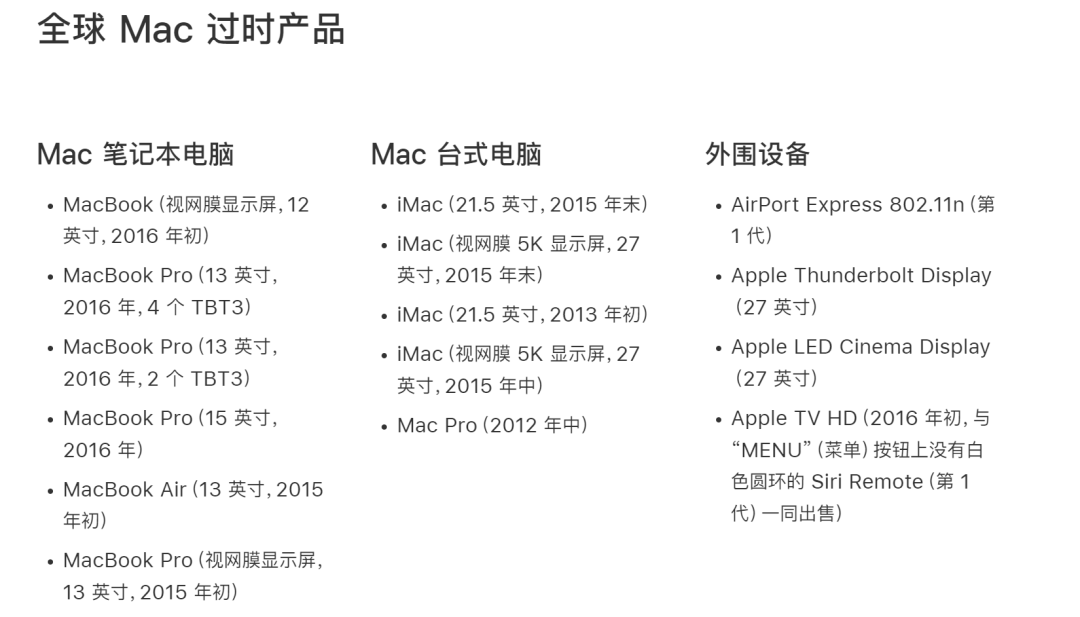 也就是说只要你的设备没在过时名单里,就可以走官方维修,在 iPhone 6S、2016 款 iPad Pro 还有 2016 款 MacBook 之后推出的机型都符合这条件。