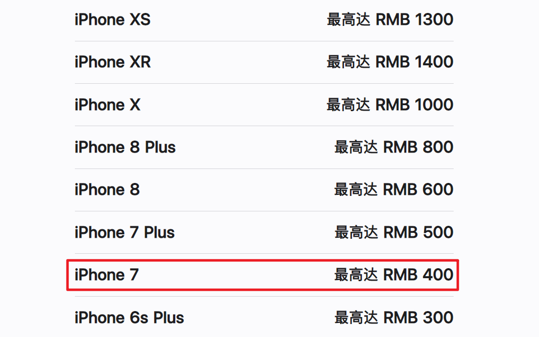 这维修费用尤其是电池价格我只能说很苹果,比很多功能正常的二手机子还贵,要知道 iPhone 7 在官方那边走以旧换新,撑死也只能抵 400。
