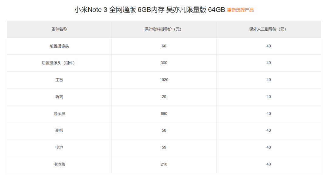 小米 Note3 换屏幕 700、换主板 1060;小米平板 4 换屏幕 700、换主板 840、换电池 179;小米笔记本电脑 Air 换主板则是 1600: