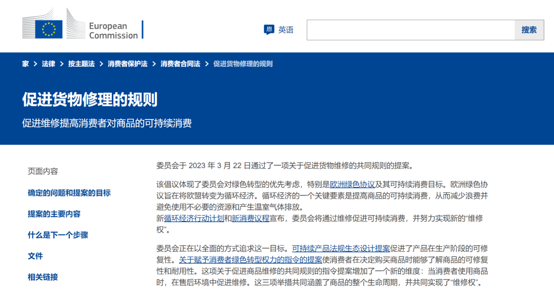 比如它提议搭建一个线上全民维修平台,方便消费者查找和比较不同服务商提供的维修服务,除此之外它也在考虑指定标准来规范服务商的维修流程。