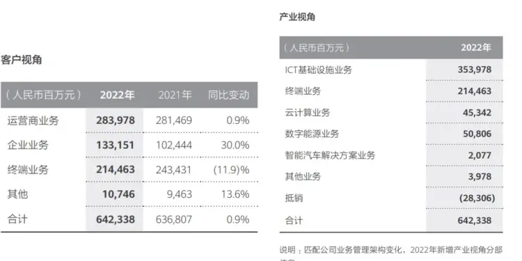 客户视角&产业视角财务数据 图片来源:华为2022年年报
