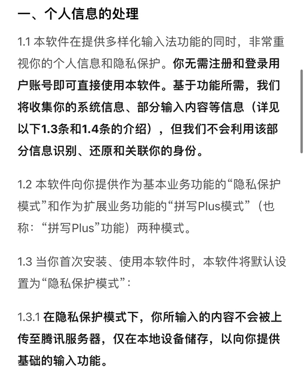 而微信此前在安卓、iOS上线时,App的隐私协议也提到对于个人信息的处理,开发团队称,软件在提供多样化输入法功能的同时,非常重视用户的个人信息和隐私保护,无需注册和登录即可直接使用。