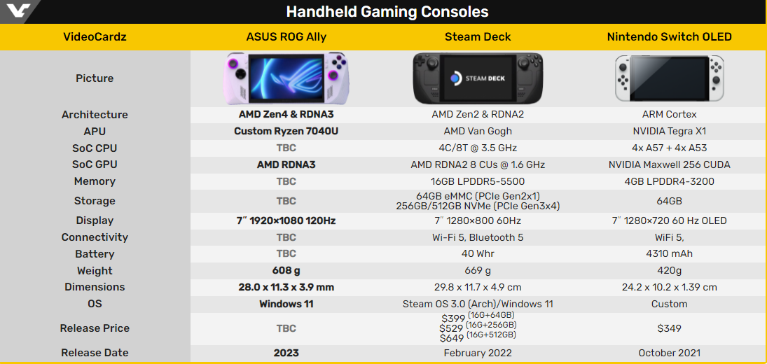 据悉,ROG Ally的处理器是定制版AMD锐龙7040U,Zen4+RDNA3架构,Steam Deck虽然也是定制芯片,可仅仅是老迈的Zen2+RDNA2。