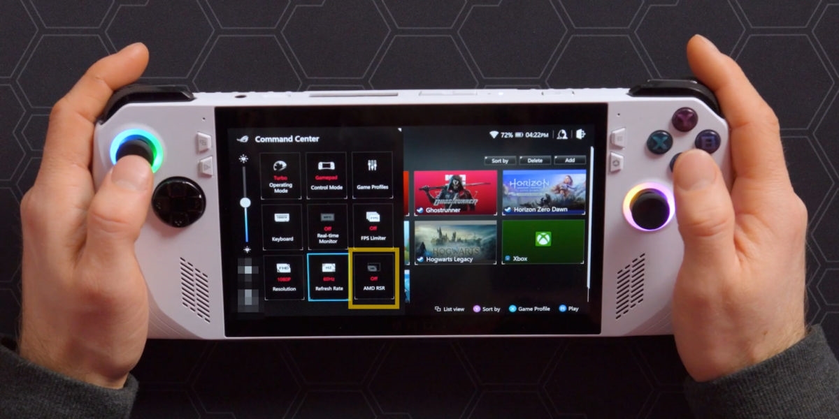 此外,上手中LTT也发现,掌机支持AMD RSR超分辨率技术,即Radeon Super Resolution,无差别地对整个帧画面进行缩放,提升游戏帧数。