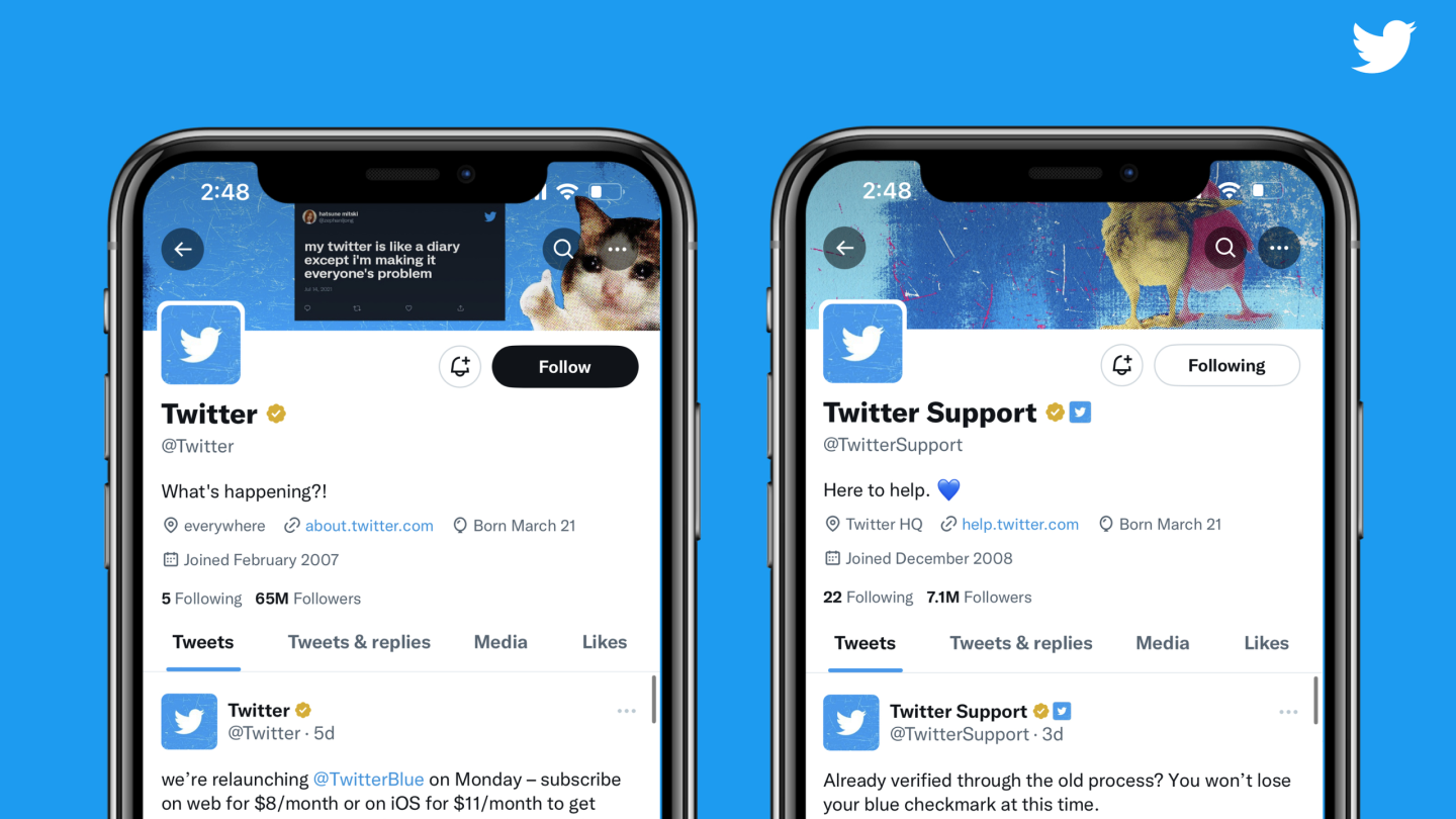 从3月开始,当通过旧系统获得蓝V认证的用户登录Twitter后,有时会收到系统发来的消息,鼓励他们付费购买Twitter Blue服务,以便保住自己的蓝V认证。