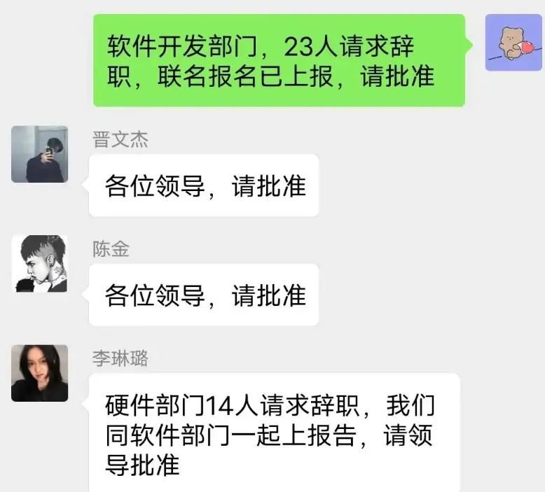 当事人声称自己全部门同事整月从8点上班,到晚上11点下班,严重违反劳动法,而公司领导却在家悠闲“躺平”,激起群愤。这最终导致软件开发部门23人集体请求辞职,硬件和其他部门的员工也有几十人纷纷请辞。