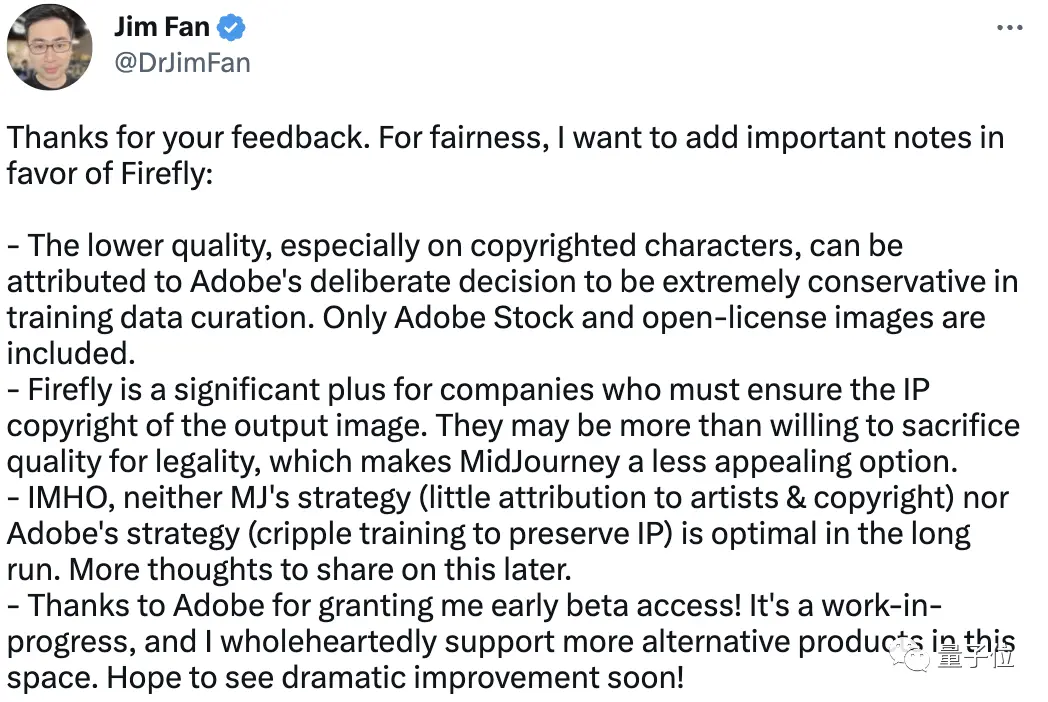 这两天,不少人开始拿到Adobe Firefly的测试资格。虽然3月下旬才刚刚杀入,但作为设计界权威公司的新AI工具,它的生成效果也自是被寄予厚望。这不,英伟达AI研究科学家Jim Fan率先给出实测: