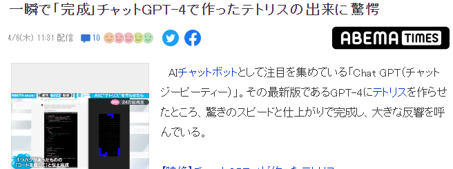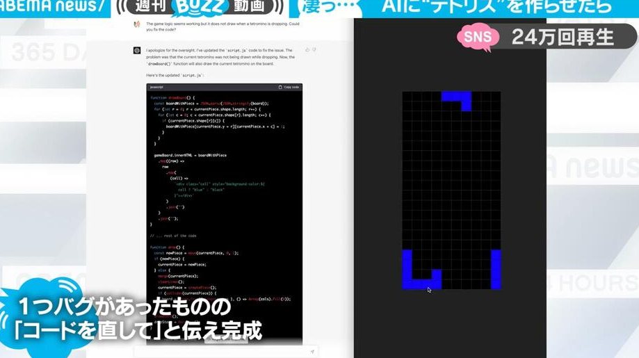 ·有玩家近日测试GPT-4能力,输入了“制作网页版俄罗斯方块”的指令后,几乎是瞬间一系列游戏代码完全生成,经过玩家检查,只出现了一个BUG,然后玩家继续输入指令“修复代码”,GPT-4毫不犹豫的修复了错误并附加了错误说明后,《俄罗斯方块》游戏制作完成。