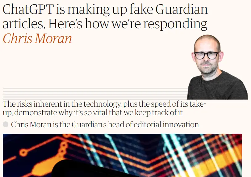 《卫报》的一名记者上个月收到研究人员的来信,称他们在使用ChatGPT进行科研期间,机器人提到这名记者在数年前写的一篇文章,但研究人员无论是在卫报网站,还是搜索引擎上都找不到原文,故来信询问是否修改过标题或者撤稿。