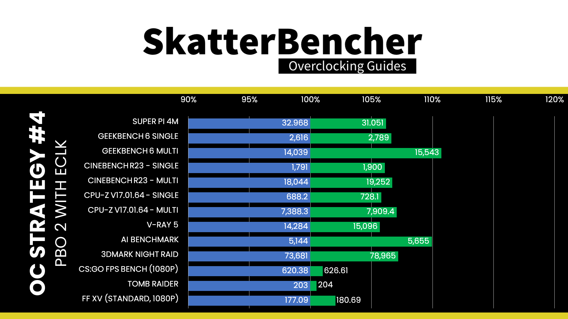 Pieter "SkatterBencher" Plaisier在多颗锐龙7 7800X3D上尝试了各种办法,包括PBO2、VF曲线优化、异步外频、EXPO内存超频等等。
