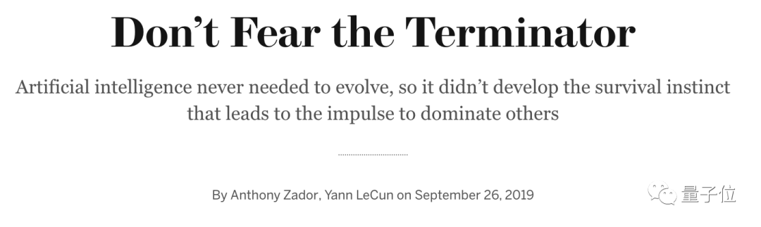而且这个问题,4年前LeCun已经在《科学美国人》上与冷泉港实验室神经科学家Anthony Zador一起撰文回应过了,标题就叫《不必害怕终结者》。