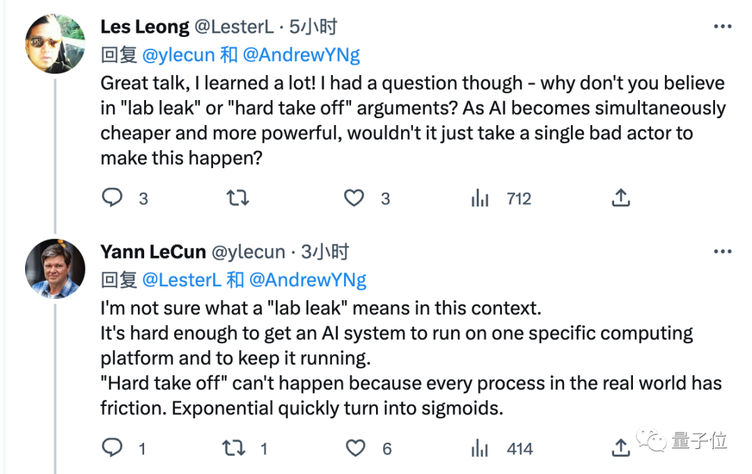 此次吴恩达与LeCun两人, 除了直播阐述各自的观点外,还回应了网友关心的更多问题。