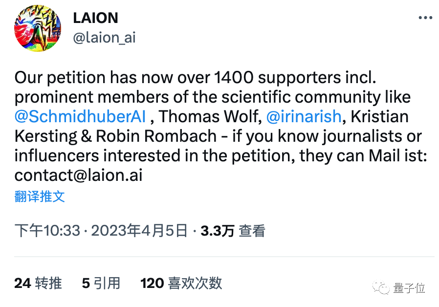 由非赢利组织LAION-AI(Stable Diffusion训练数据提供者)发起的请愿书也有超过1400人签署。