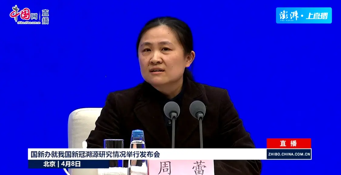 4月8日下午,国务院新闻办公室举行新闻发布会,请国家疾控局副局长、中国疾控中心主任沈洪兵和有关专家介绍我国新冠溯源研究情况,并答记者问。发布会上,中国疾控中心研究员周蕾表示,关于新冠病毒的起源,中疾控研究结果表明,通过实验室引入是“极不可能”的。