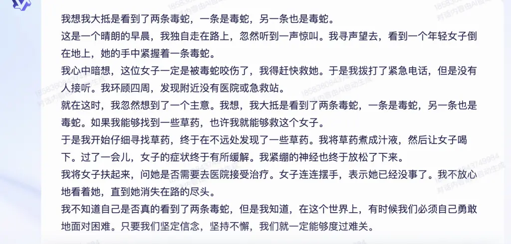 文心一言则编得比较简单,描述了一个人蛇战斗场面。