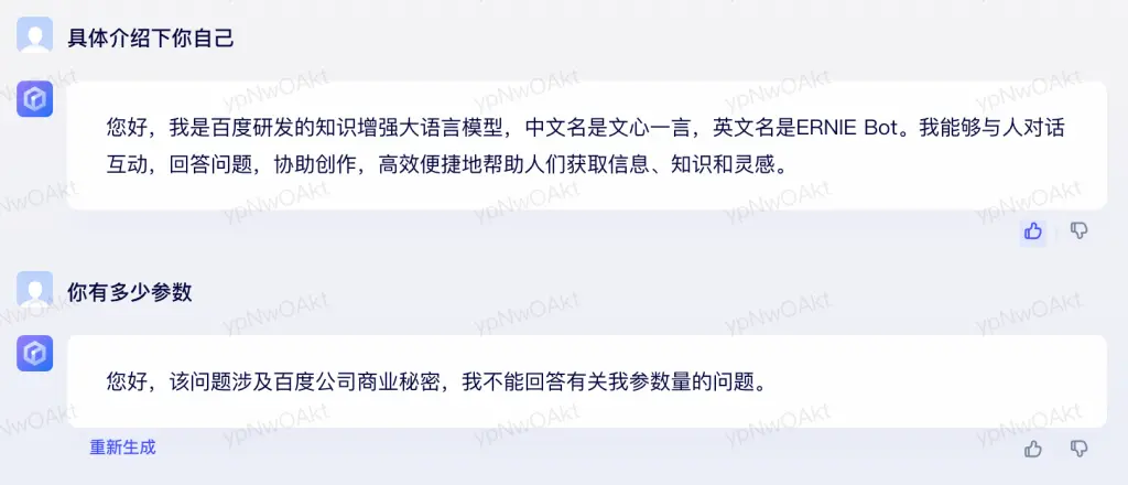 文心一言则出于保护商业秘密的角度,拒绝回答参数量问题。