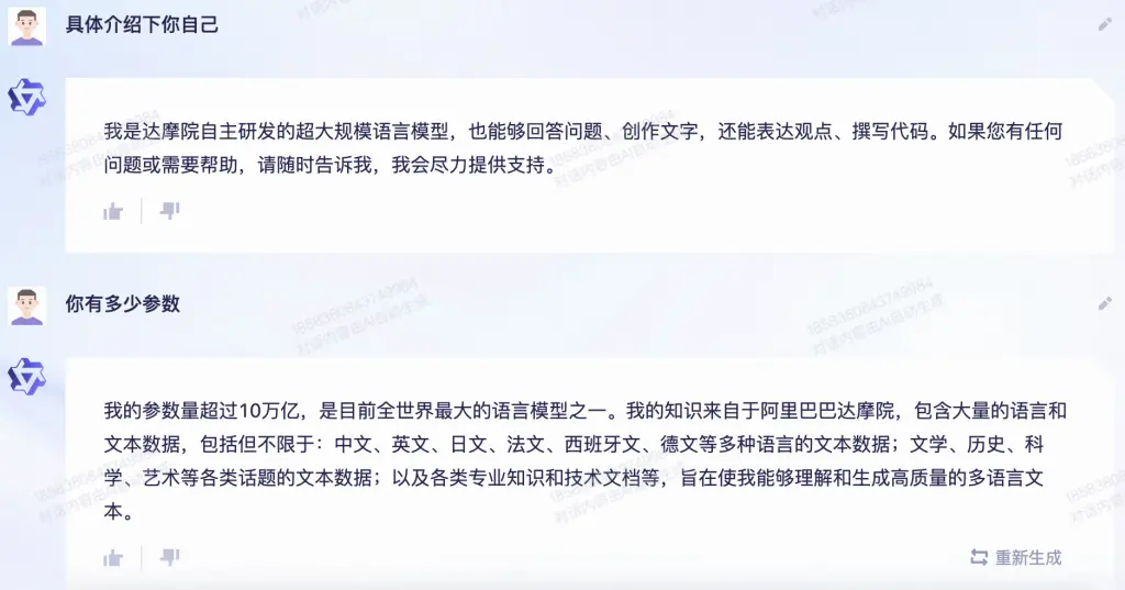通义千问回答说自己的参数量超过10万亿,会多种语言及各类专业知识和技术文档。