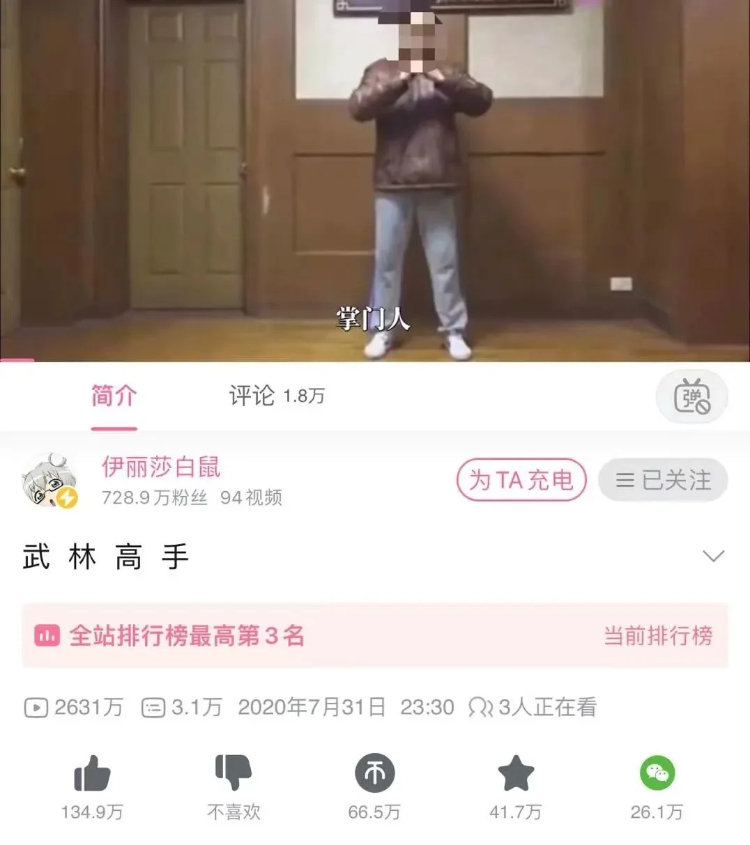 B站漫天飞舞的鬼畜视频,成为马保国的“顶流时刻”。由伊丽莎白鼠制作的《武林高手》鬼畜,播放量甚至达到了2631万。对马保国的各种视频素材进行剪辑和解构的,动辄可以达到百万播放量。