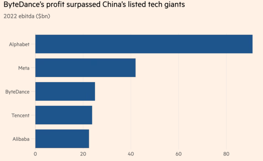 这也意味着字节跳动的这项财务数据在2022年已经超过老牌科技龙头腾讯和阿里。根据统计,这两家公司2022年的EBITDA分别为239亿美元和225亿美元。