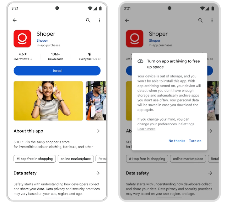 需要注意的是,根据谷歌演示,如果用户安装新应用时出现存储空间不足的情况,系统会弹出窗口询问是否开启自动归档功能。