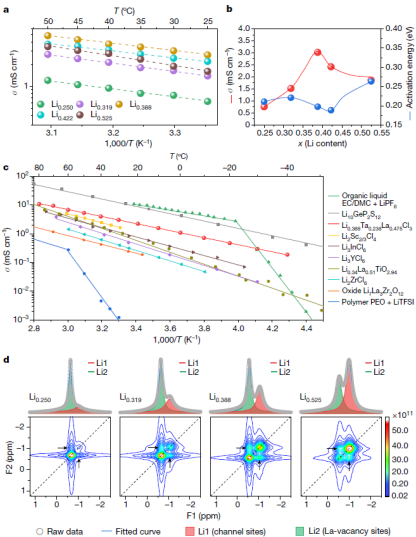 图2.LaCl3基固态电解质的离子传输性能和机制