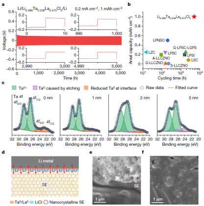 图3.LaCl3基固态电解质的锂金属界面稳定性