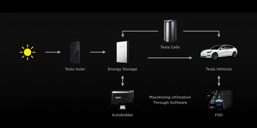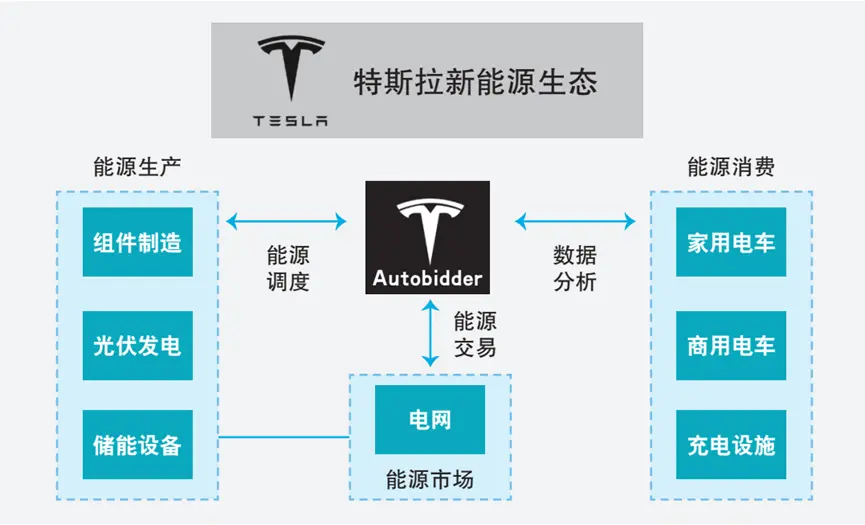 除此之外,特斯拉还针对电力交易市场化推出了Autobidder平台,特斯拉的新能源汽车、充电桩以及光储产品均可以搭载Autobidder,实现从“发电-储能-用电-交易”的能源流动闭环,形成“车+桩+光+储+荷+智”电力生态系统的一体化整合。
