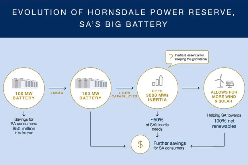 基于特斯拉的构网型变流器技术,这座曾是世界第一大规模的储能电站目前已经可以向南澳大利亚州电网提供大约3000 MWs的虚拟惯量,这大约是该州整个电网惯量需求的一半。