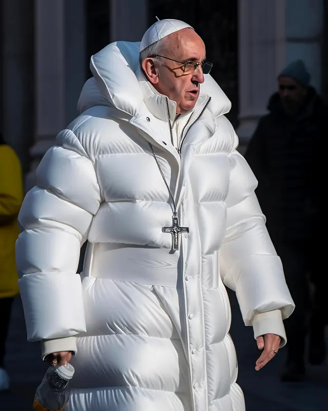 图1:教皇穿着巴黎世家羽绒服的AI图片