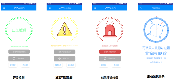 该系统主要用于检测周围是否有无人机正在拍摄,并能够定位无人机以及提醒用户。这项功能不仅可用于日常生活中的隐私保护,还可以应用于战场上对敌方无人机的感知定位。