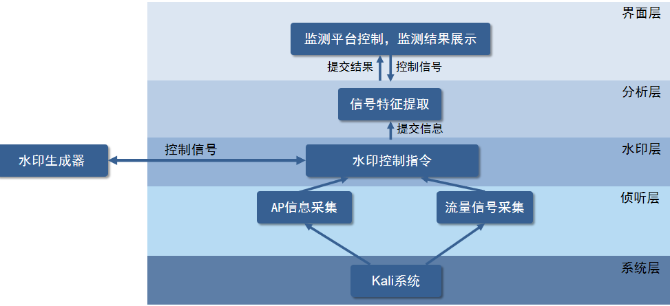 原理方面,当无人机进行非法拍摄时,会传递控制信号,并以视频流的形式返回给入侵者目前的拍摄视角。基于这个适用场景,团队设想通过检测系统对网络流量进行侦听,捕捉到附近有无人机在进行拍摄,此时,系统控制水印生成器产生物理刺激,给视频流加上水印,再次侦听,检测系统就能确定有无人机在偷拍我们,从而提出预警。