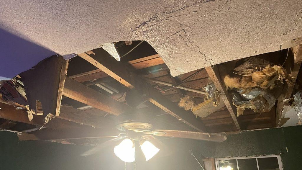 Dylastein调查了天花板塌的原因,他认为是家里空调漏水损坏了石膏板,导致材料软化。该事件发生后,Dylastein一直在清理和修复他的房间,目前还未恢复直播。