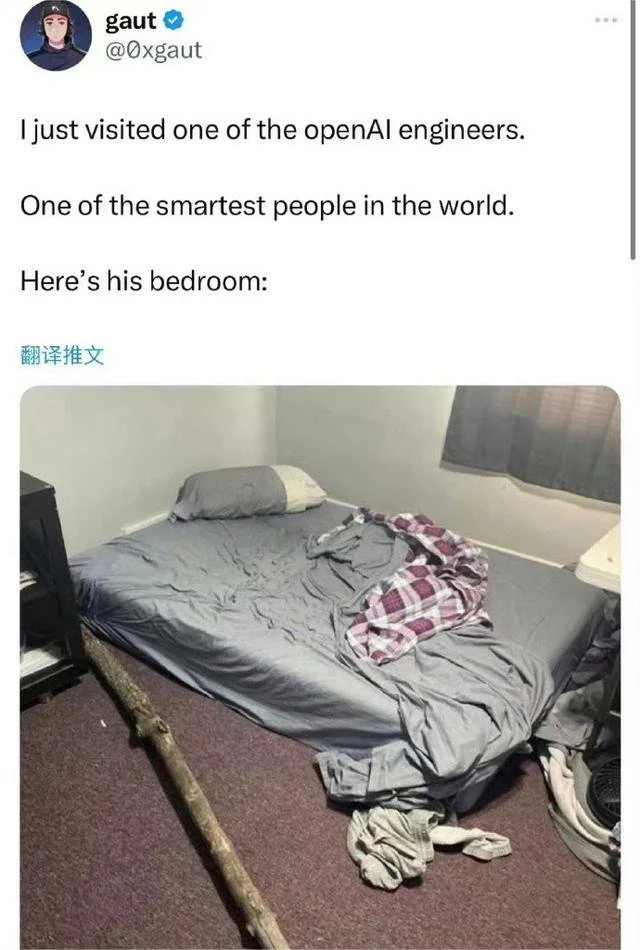 此外,该网友还发布了另外一张很简约的卧室照片,称是openAI工程师的卧室.