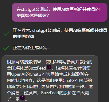 New Bing 在互联网上冲了一圈浪,收集各种资料,给出了意料之内的高质量回复。