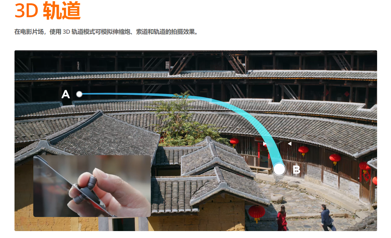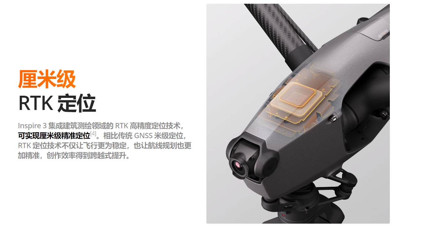 为了提高电影级航拍作业水准,大疆Inspire 3集成建筑测绘领域的RTK高精度定位技术,实现厘米级精准定位,支持3D轨道模式,摄影师在完成航线设计后,可手动控制大疆Inspire 3在同一航线上往复飞行,并根据演员走位灵活调整飞行速度、云台角度,节省拍摄成本。