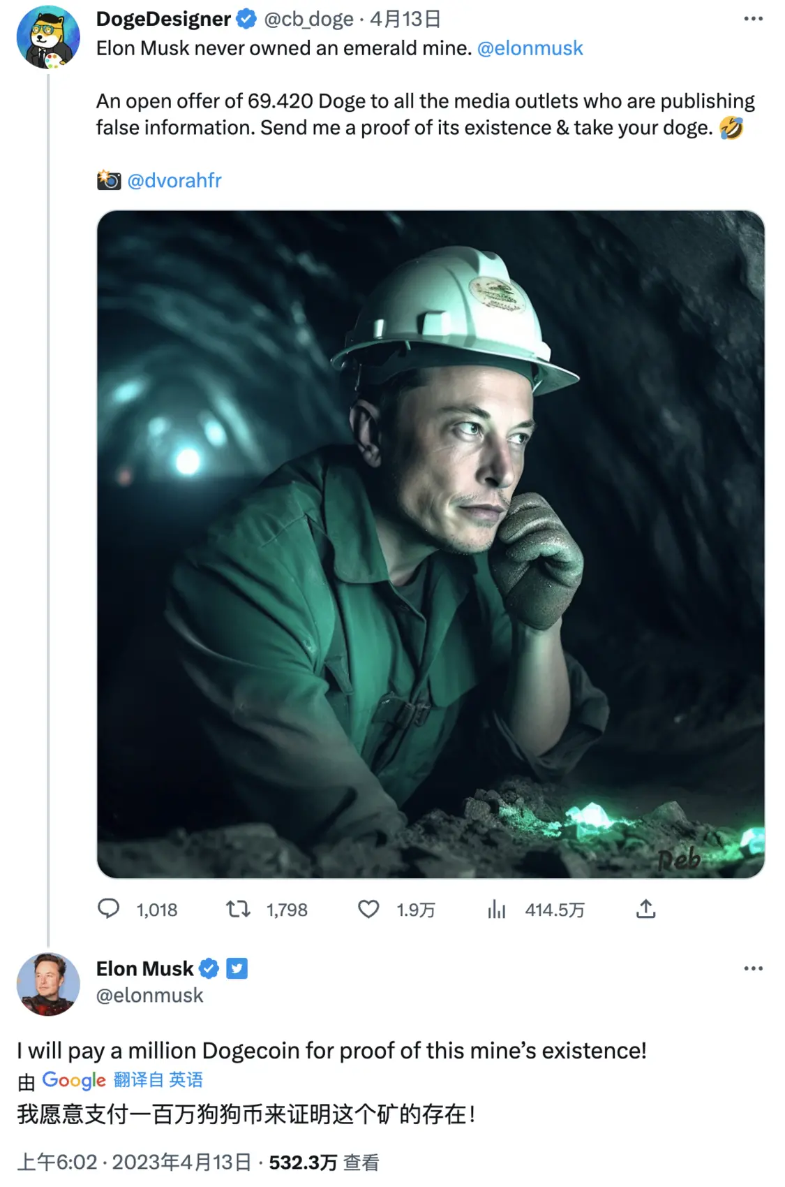 周四,疑似马斯克支持者的Twitter账号DogeDesigner写道:“马斯克从未拥有过翡翠矿。向所有发布虚假信息的媒体机构公开出价69.420个狗狗币。向我发送能够证明翡翠矿存在的证据,然后拿走你的狗狗币。”