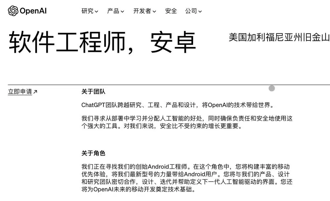 前段时间,推出了大量成功AI模型的OpenAI更新了招聘职位列表,开始寻找“移动工程师”,简单来说就是正在组建移动平台上的AI团队。没错,OpenAI终于要对移动互联网生态下手了。