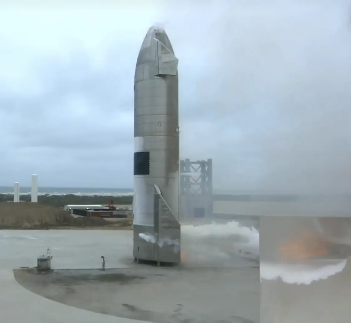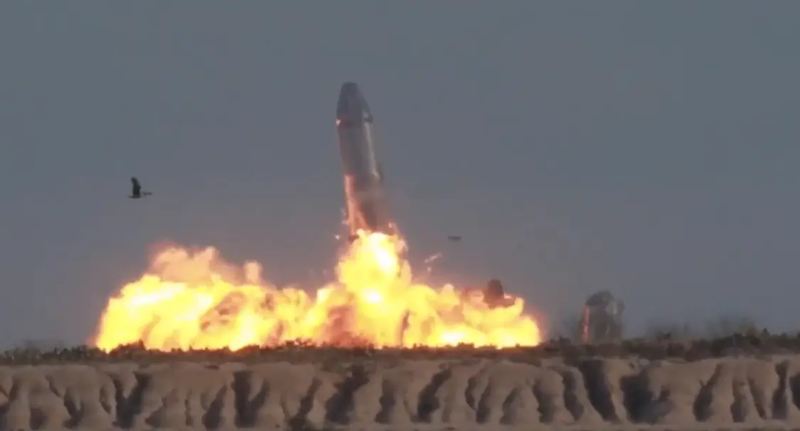 2020年8月,SpaceX发射SN8版本的原型星际飞船。在到达几英里的高空后,星际飞船关闭了发动机,完成了“腹部朝下”的翻转动作,以水平姿态向地面坠落,但是它并未实现软着陆,飞船坠毁,燃烧成了一个火球,火箭碎片散落在着陆点上。