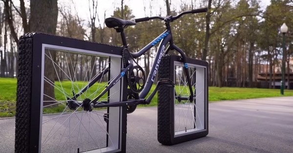 他将一辆正常的山地自行车进行了改造,将原本圆形的车轮改成了方形。虽然看上去非常奇怪,但是这辆自行车居然真的可以骑行。