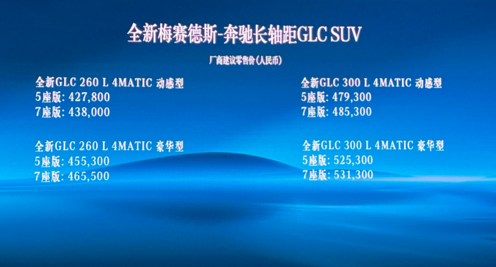 就在今日开幕的2023上海车展上,新一代国产奔驰GLC长轴距版正式上市,其共8款车型,售价42.78-53.13万元,全系均提供5座和7座两种版本可选。新车尺寸再加长,长宽高4826*1890*1714毫米,轴距2977毫米,要知道它的大哥GLE车长4930毫米,轴距也才2995毫米。